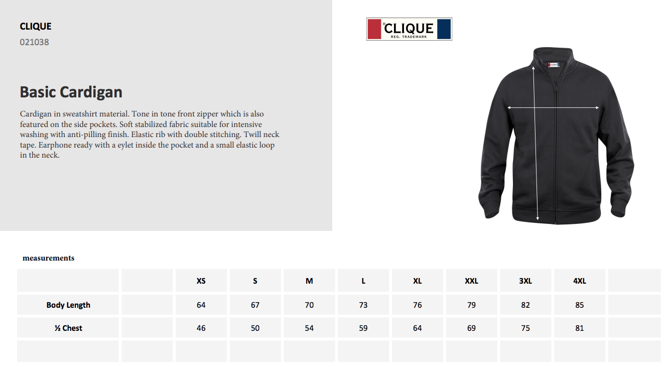 | Størrelse | XS, S, M, L, XL, XXL, 3XL, 4XL |